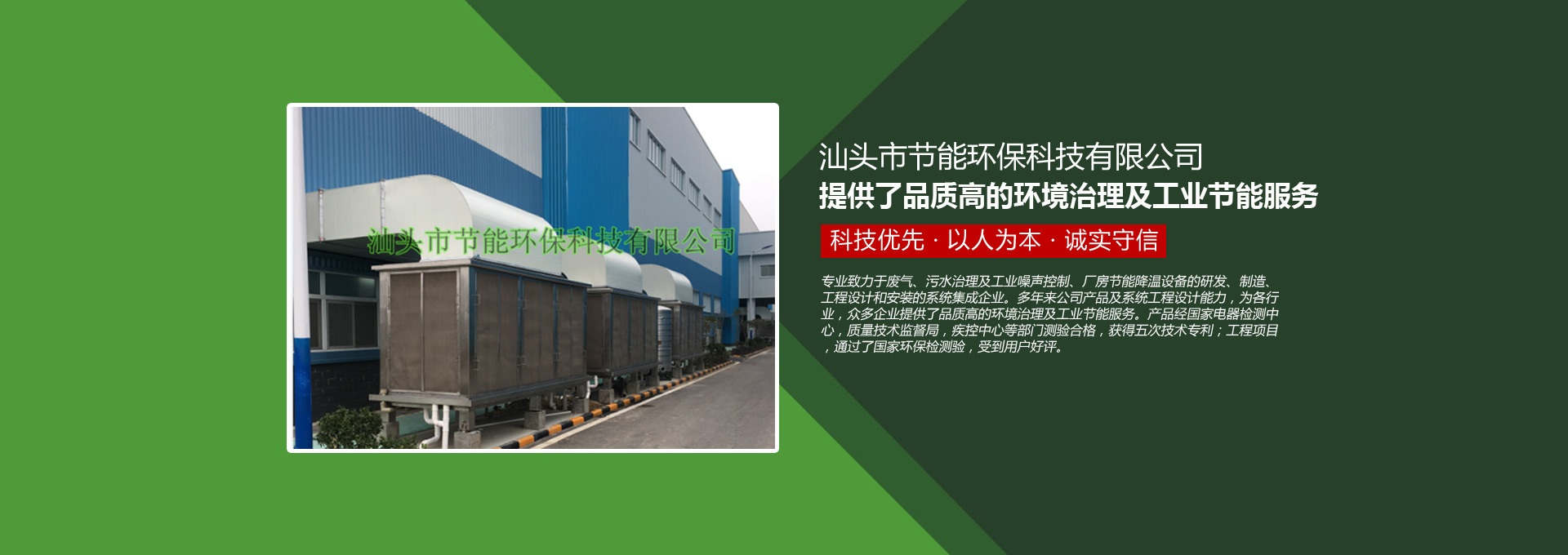 汕頭市節(jié)能環(huán)保科技有限公司創(chuàng)建于1998年,是一家專業(yè)致力于廢氣、污水、粉塵、噪聲治理,廠房節(jié)能降溫設備的研發(fā)、制造、工程設計和安裝的系統(tǒng)集成企業(yè)。多年來公司產品及系統(tǒng)工程設計能力,為各行業(yè),眾多企業(yè)提供了品質高的環(huán)境治理及工業(yè)節(jié)能服務。產品經(jīng)國家電器檢測中心,質量技術監(jiān)督局,疾控中心等部門測驗合格,獲得五次技術專利;工程項目通過了國家環(huán)保檢驗檢測,受到用戶好評。